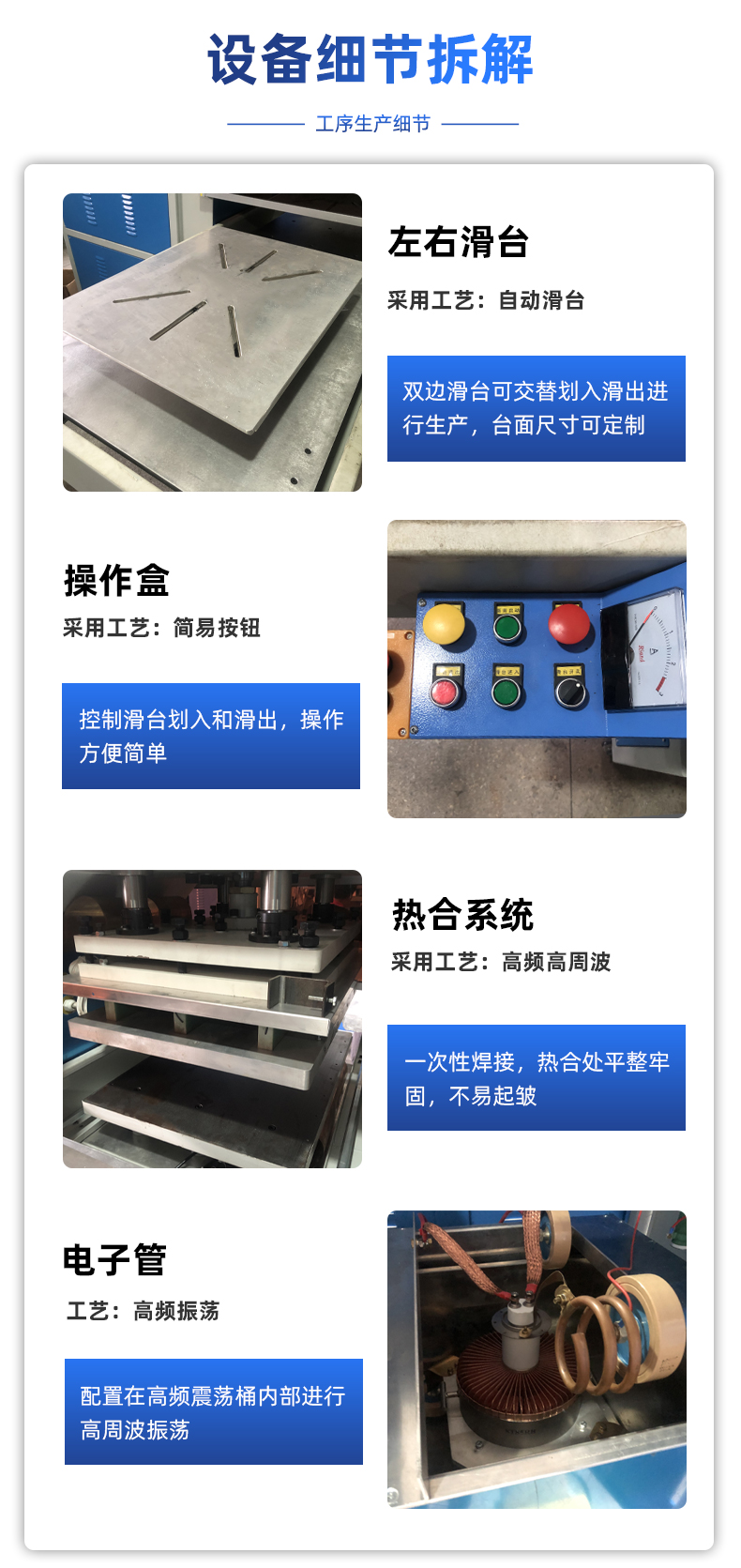 能馬桶蓋座鋁箔加熱片熱合機 咨詢熱線:+8613564342156 在線咨詢 產(chǎn)品詳細 本信息鏈接地址:/gaozhoubo/427.html 標(biāo)簽: 相關(guān)推薦: 上一篇:PVC運輸液體袋高頻熱合機 下一篇:PE+無紡布升溫毯熱壓機 用手機看 拍下二維碼,信息隨身看 試試用手機掃一掃, 在你手機上繼續(xù)觀看此頁面。